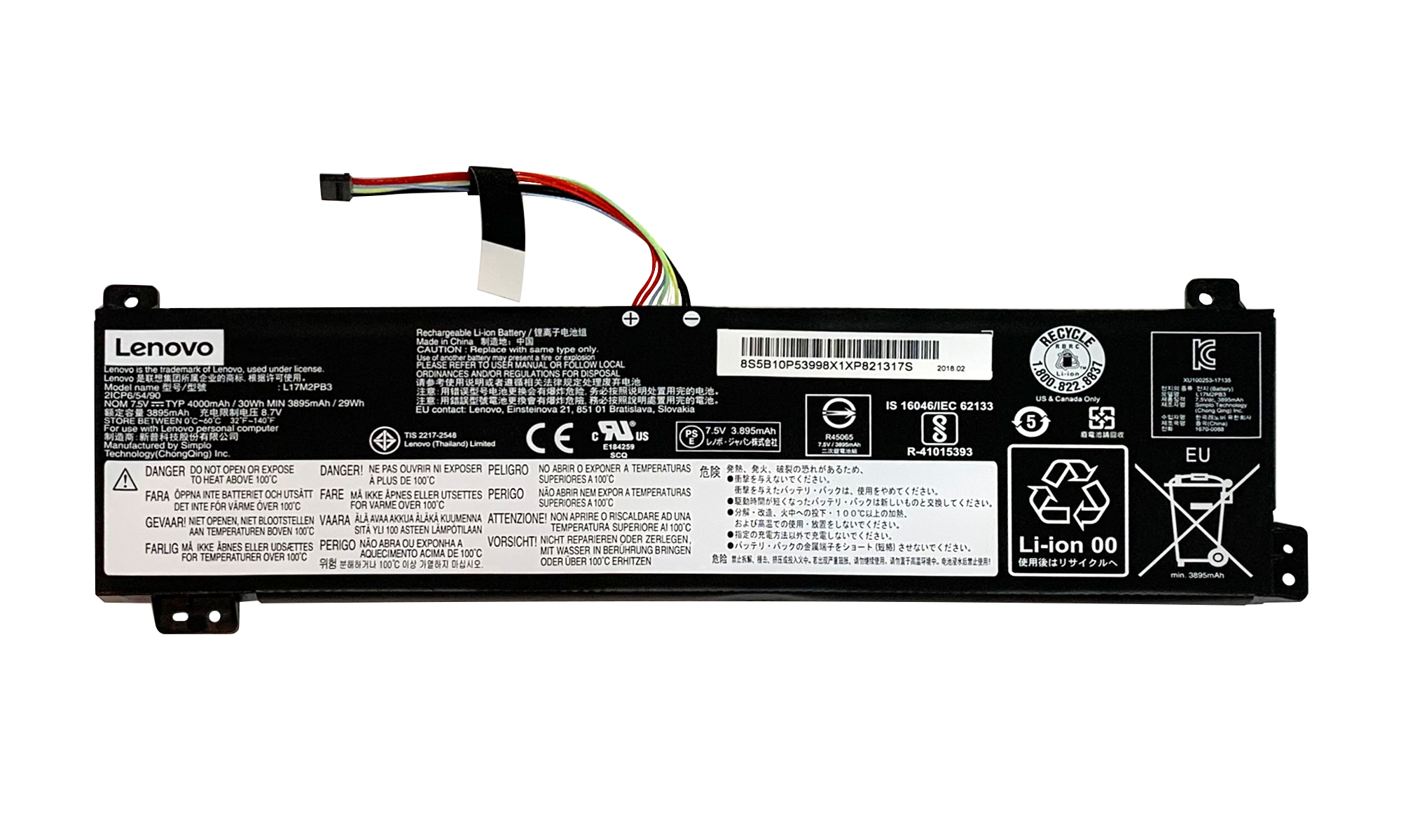 Baterie originala Lenovo 2ICP6/54/90 L17C2PB3 L17L2PB3 L17M2PB3 5B10P53998 5B10P54004 5B10P54005 5B10R32998 5B10R38759 W125673277 5B10W67297 5B10W67381 5B10W67423 7.5V 3895mAh 29Wh 2 celule