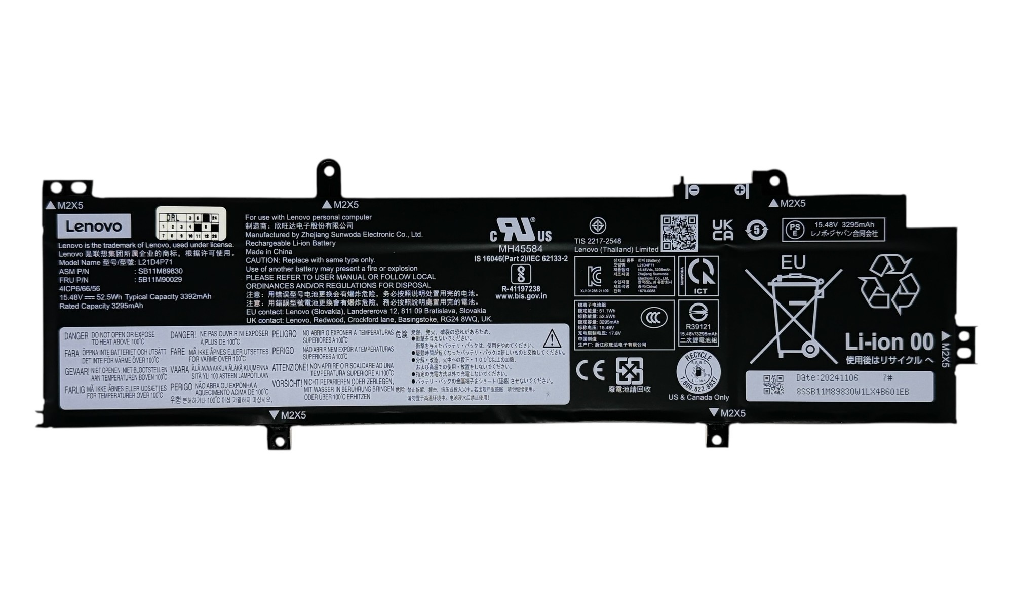 Lenovo P/N: 5B10W51863 5B10W51865 5B10W51866 5B10W51867 5B10W51899 5B10W51900 5B10W51901 5B10W51902 5B10W51905 5B11M90025 5B11M90026 5B11M90027 5B11M90028 5B11M90029 SB11M89830