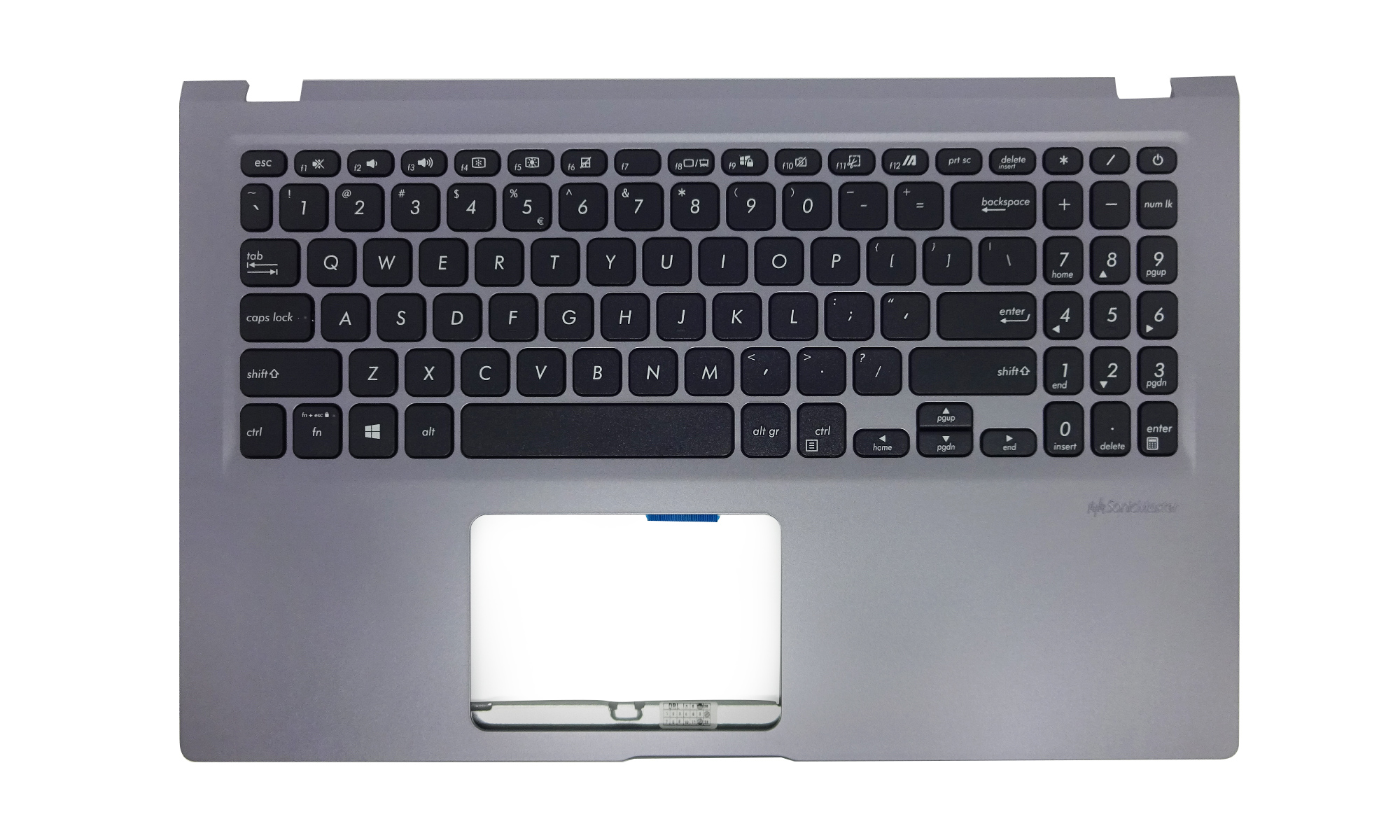 Carcasa superioara cu tastatura originala Asus 90NB0TH1-R30US0, 90NB0SR1-R30UI0 layout US International, argintiu inchis, fara iluminare