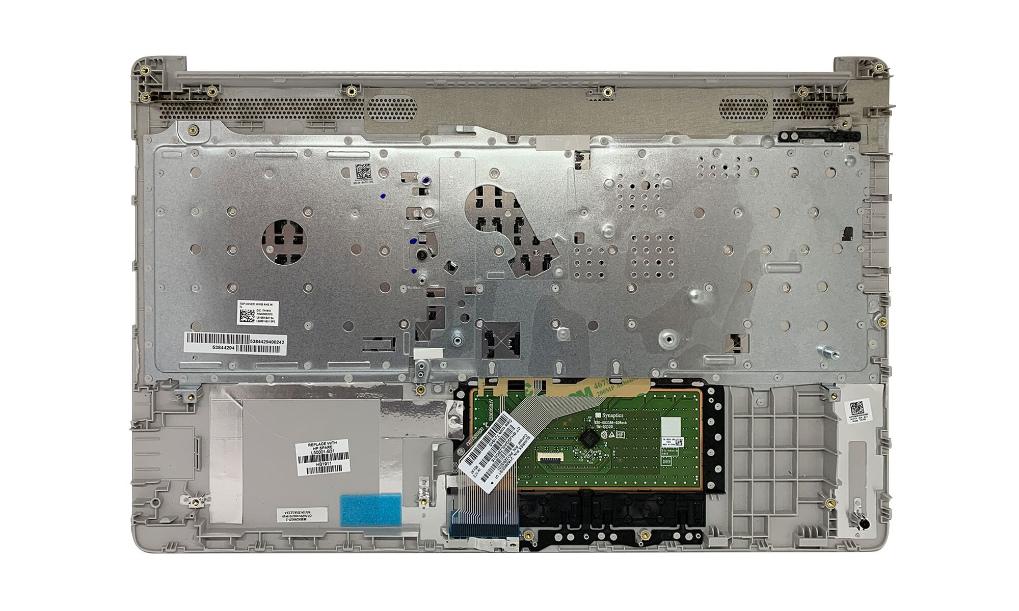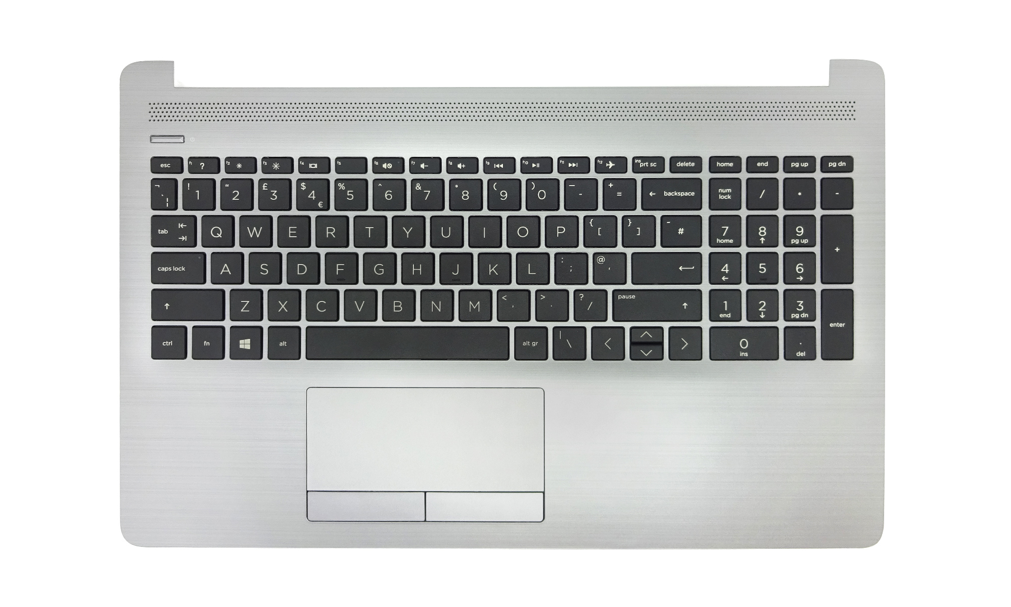 Carcasa superioara laptop cu tastatura si touchpad HP L50001-03a€‹1, layout UK, fara iluminare, argintiea€‹