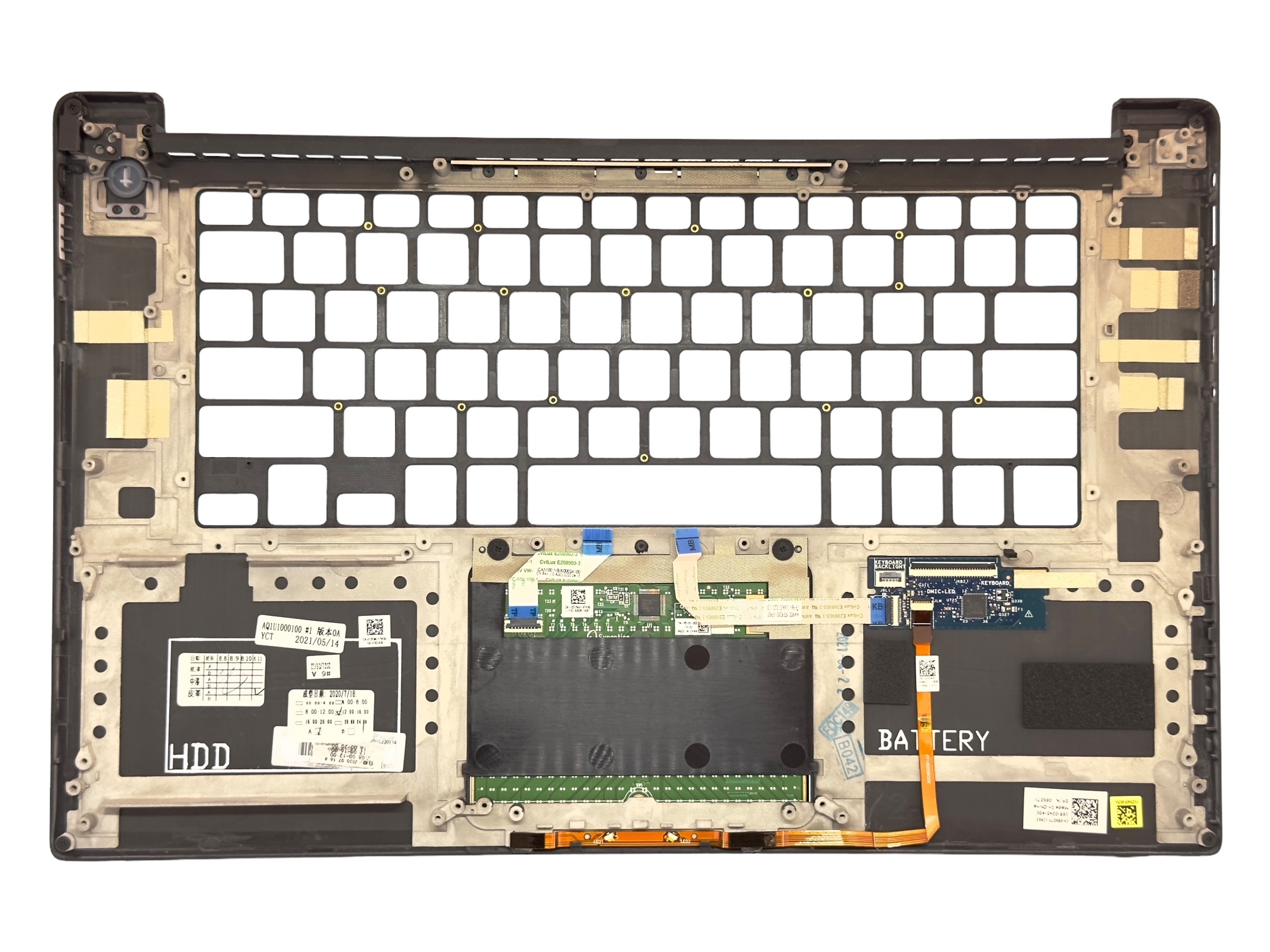 Carcasa superioara palmrest Dell 86D7Y, din fibra de carbon, pentru tastatura cu layout US, fara cititor amprenta