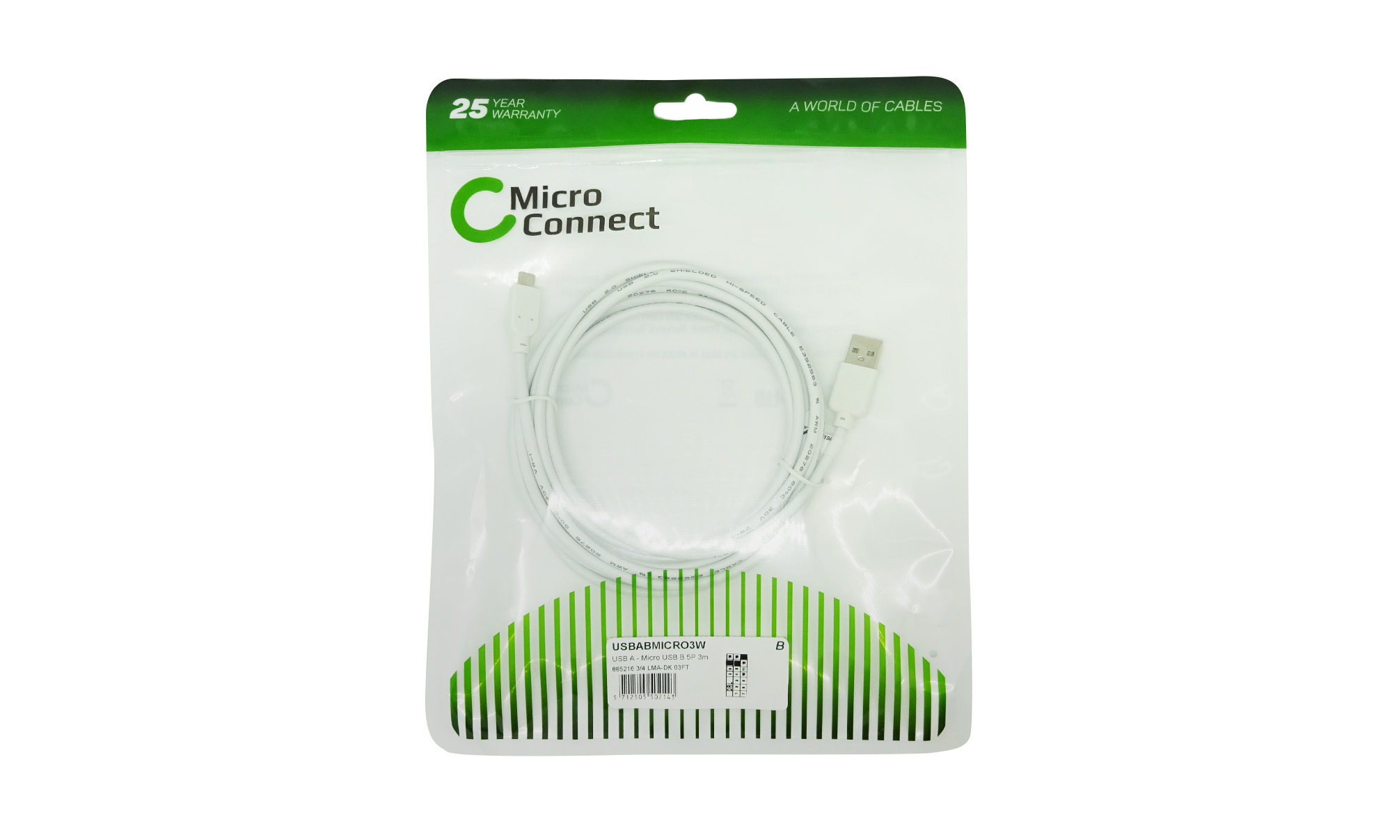 Cablu USB 2.0 - MicroUSB 2.0, 3m, alb, controller XBOX One S, X USBABMICRO3W 5712505502143