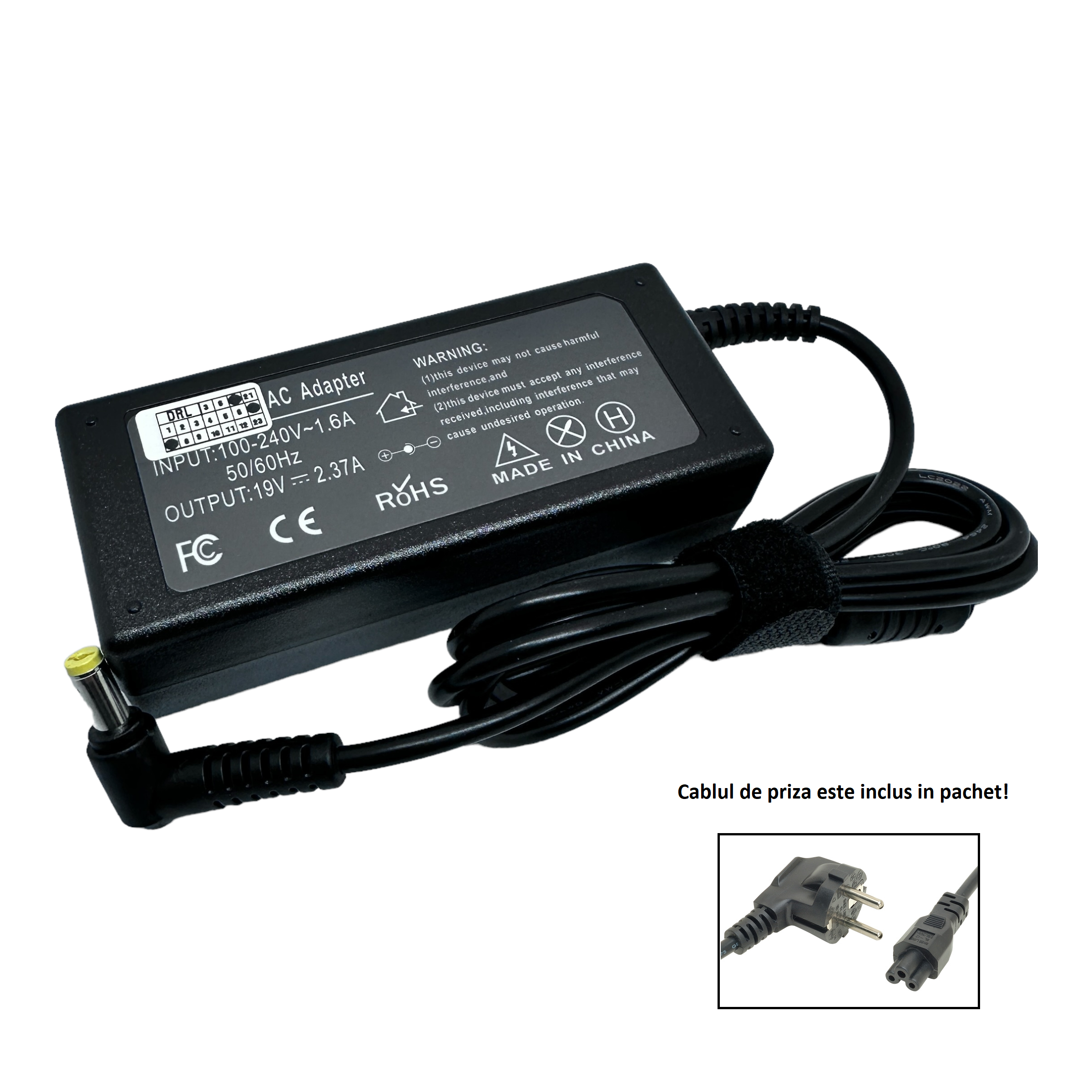 Incarcator compatibil Acer KP.04501.002 KP.04501.009 KP.04501.010 KP.04501.014 KP.04501.016 KP.04503.002 KP.04503.008 KP.04503.010 KP.0450H.002 KP.0450H.010 KP.0450H.014 19V 2.37A 45W conector 5.5 x 1.7mm (mufa mare clasica)