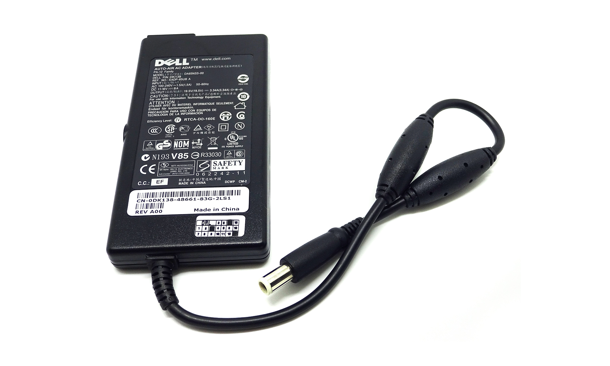 Incarcator dual original Dell DA65NS3-00 DK138 0DK138 D7161 0D7161 kit alimentator travel priza AC, auto, avion, 65W, 19.5V, 3.34A, varianta clasica slim