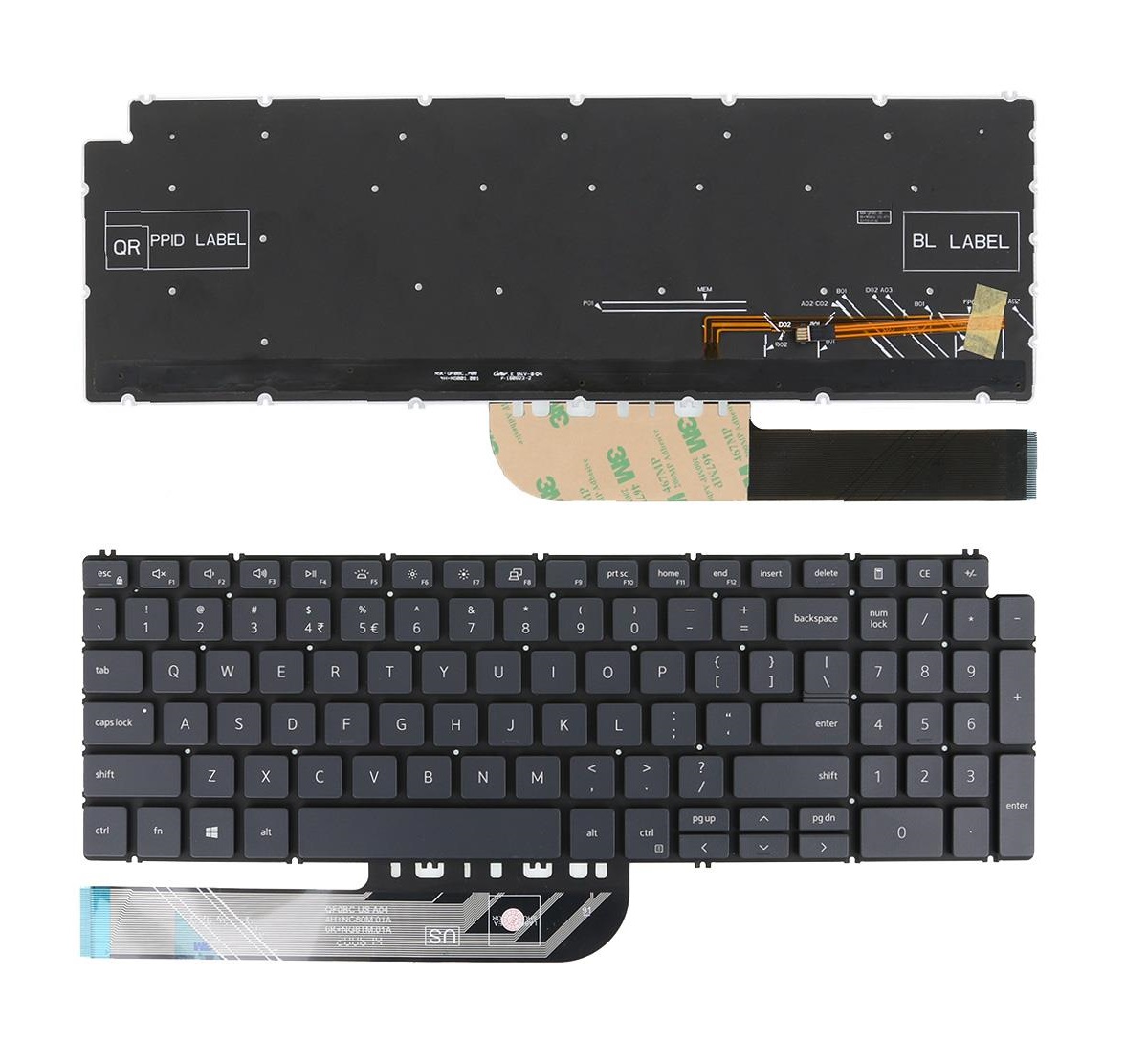 Tastatura compatibila Dell 0WNM6, 1FRFK, cu iluminare, gri, layout US