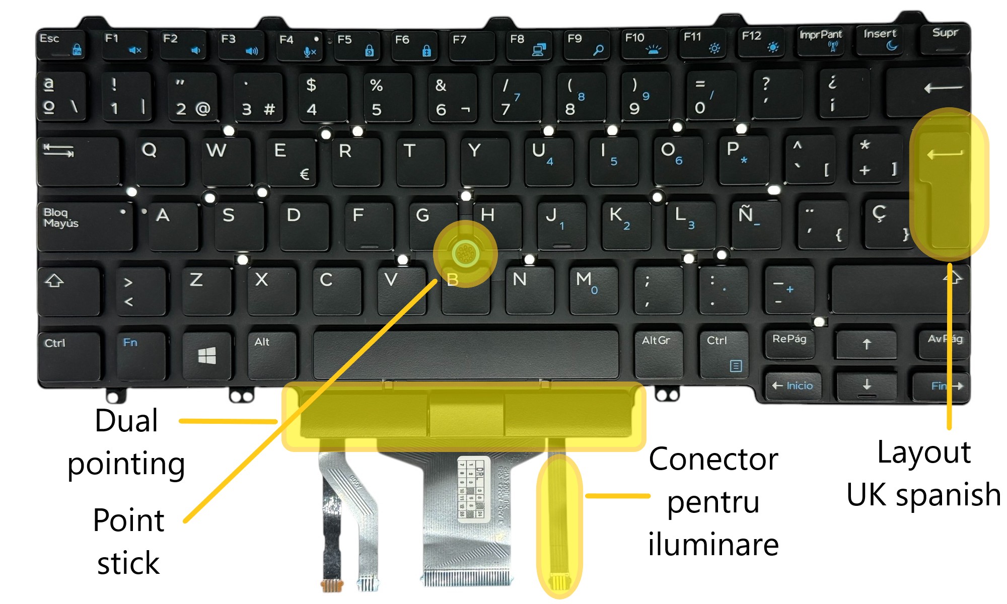 Tastatura compatibila Dell 6VTCP 06VTCP Layout UK spanish, dual pointing iluminata