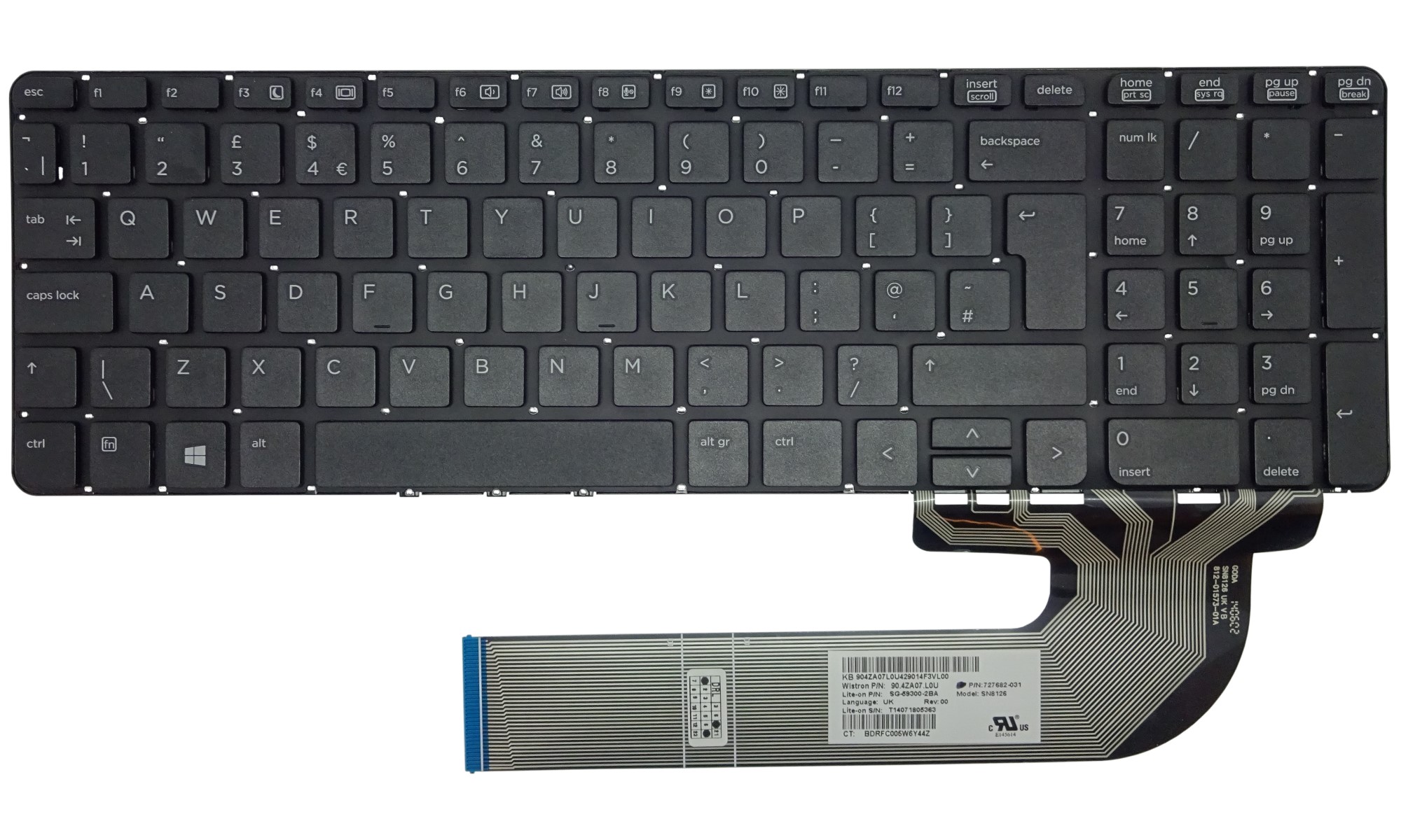 Tastatura compatibila laptop HP 727682-031, 768787-031 neagra, fara iluminare, fara rama, layout UK