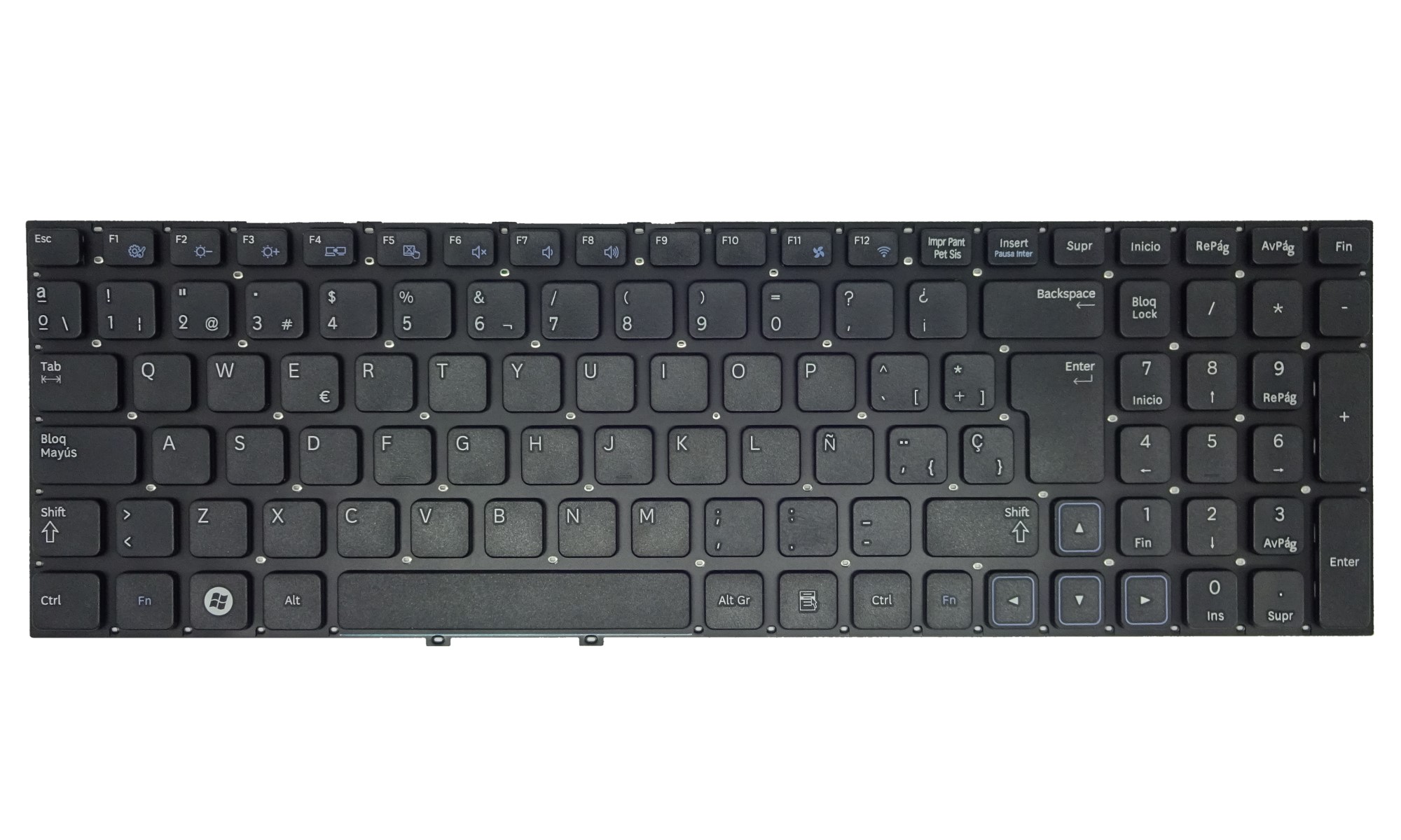 Tastatura compatibila Samsung NP300E5A, NP300E5C, NP300E5X, NP300E5Z, NP300E5ZH, NP300V5A, NP300V5AH, NP300V5Z, NP305E5A, NP305V5A, layout spaniol, neagra, fara rama
