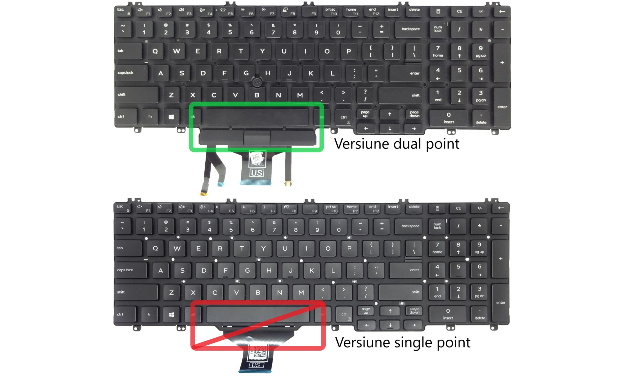 Tastatura originala Dell M25NK, TCWPM, neagra, cu iluminare, dual point, layout international