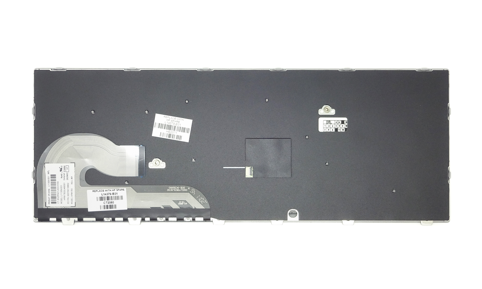 Tastatura originala HP L14379-B31, rama argintie, taste negre, fara iluminare, layout International